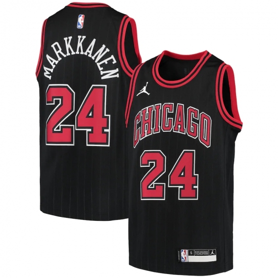 >Youth Chicago Bulls #24 Lauri Markkanen Jordan Brand Black 2020-21 Swingman Player Jersey