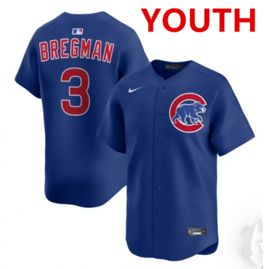 >Youth Chicago Cubs #3 Alex Bregman nike Royal alternate limited jersey