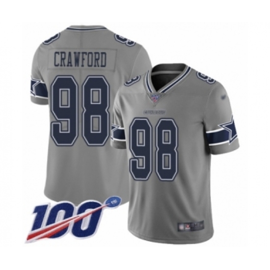 >Youth Dallas Cowboys #98 Tyrone Crawford Limited Gray Inverted Legend 100th Season Football Jersey