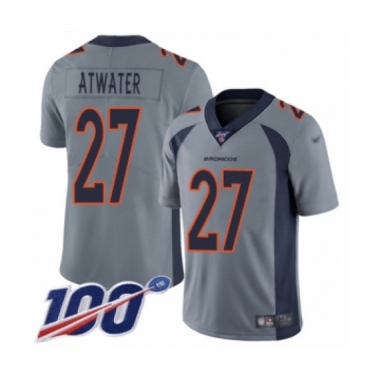 >Youth Denver Broncos #27 Steve Atwater Limited Silver Inverted Legend 100th Season Football Jersey