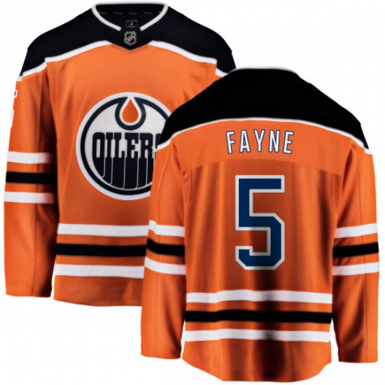 Home>NHL>Edmonton Oilers>Mark Fayne>Youth Edmonton Oilers #5 Mark Fayne Fanatics Branded Orange Home Breakaway NHL Jersey