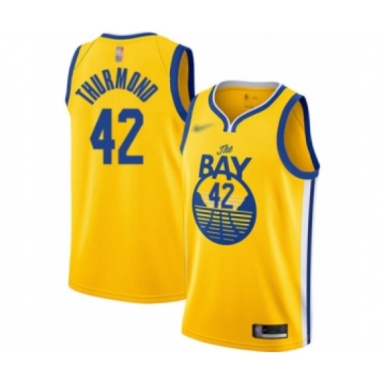 Men's Nike Golden State Warriors #42 Nate Thurmond Authentic Gold 2018 NBA Finals Bound NBA Jersey - City Edition