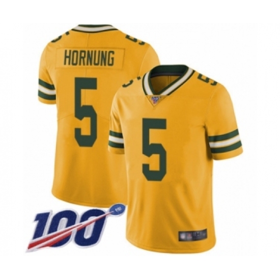 >Youth Green Bay Packers #5 Paul Hornung Limited Gold Rush Vapor Untouchable 100th Season Football Jersey