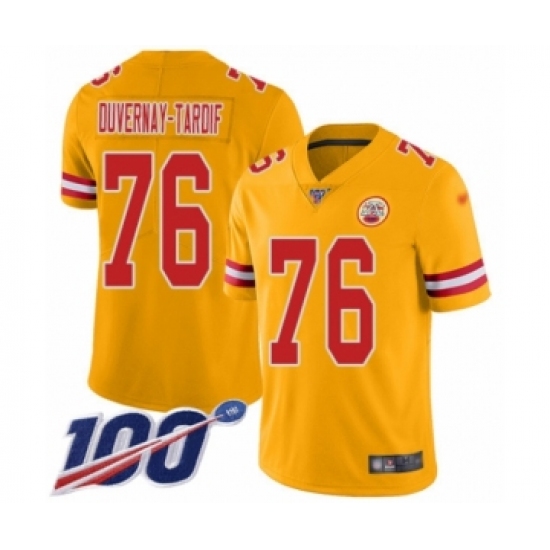 >Youth Kansas City Chiefs #76 Laurent Duvernay-Tardif Limited Gold Inverted Legend 100th Season Football Jersey