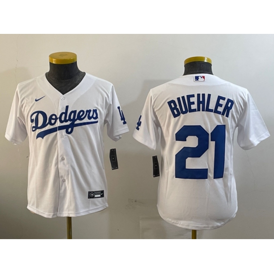 Youth Los Angeles Dodgers #21 Walker Buehler White Stitched Cool Base Nike Jersey