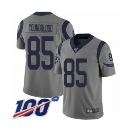 >Youth Los Angeles Rams #85 Jack Youngblood Limited Gray Inverted Legend 100th Season Football Jersey