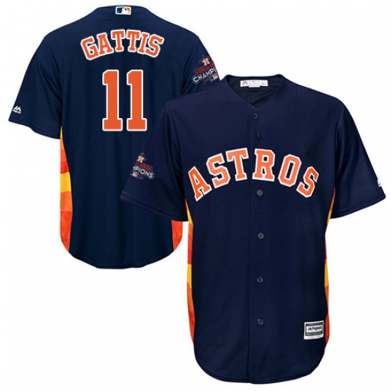 Home>MLB>Houston Astros>Evan Gattis>Youth Majestic Houston Astros #11 Evan Gattis Authentic Navy Blue Alternate 2017 World Series Champions Cool Base MLB Jersey