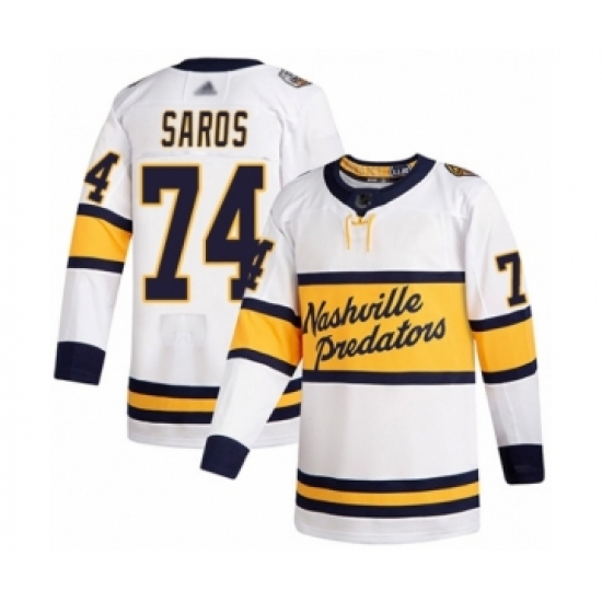 >Youth Nashville Predators #74 Juuse Saros Authentic White 2020 Winter Classic Hockey Jersey