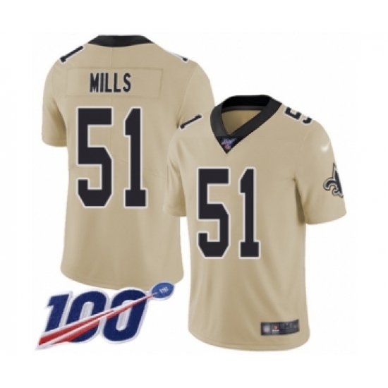 >Youth New Orleans Saints #51 Sam Mills Limited Gold Inverted Legend 100th Season Football Jersey