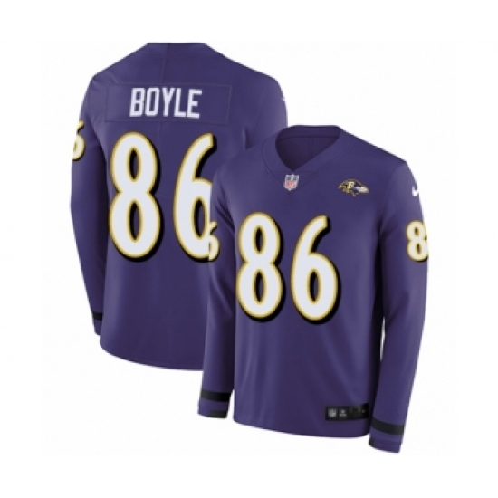 >Youth Nike Baltimore Ravens #86 Nick Boyle Limited Purple Therma Long Sleeve NFL Jersey