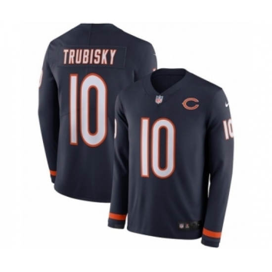 >Youth Nike Chicago Bears #10 Mitchell Trubisky Limited Navy Blue Therma Long Sleeve NFL Jersey