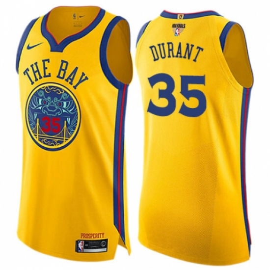 Youth Nike Golden State Warriors #35 Kevin Durant Swingman Gold 2018 NBA Finals Bound NBA Jersey - City Edition