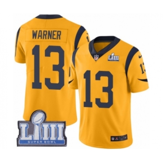 >Youth Nike Los Angeles Rams #13 Kurt Warner Limited Gold Rush Vapor Untouchable Super Bowl LIII Bound NFL Jersey