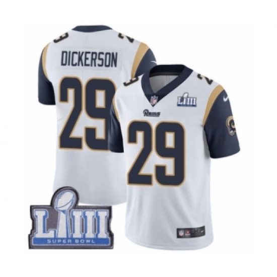 >Youth Nike Los Angeles Rams #29 Eric Dickerson White Vapor Untouchable Limited Player Super Bowl LIII Bound NFL Jersey