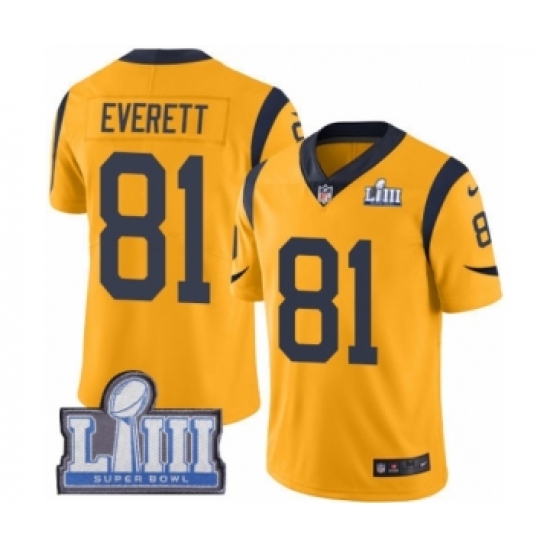 >Youth Nike Los Angeles Rams #81 Gerald Everett Limited Gold Rush Vapor Untouchable Super Bowl LIII Bound NFL Jersey