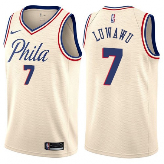 Home>NBA>Philadelphia 76ers>Timothe Luwawu>Youth Nike Philadelphia 76ers #7 Timothe Luwawu Swingman Cream NBA Jersey - City Edition