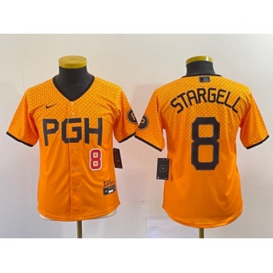 Youth Nike Pittsburgh Pirates #8 Willie Stargell Number Yellow 2023 City Connect Stitched Jersey