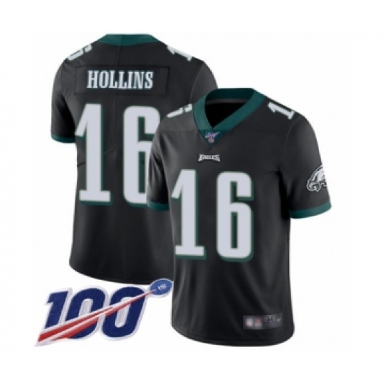 Youth Philadelphia Eagles #16 Mack Hollins Black Alternate Vapor Untouchable Limited Player 100th Season Football Jersey