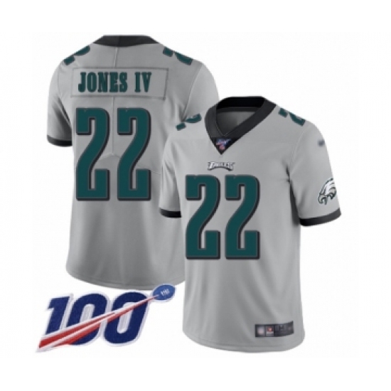 >Youth Philadelphia Eagles #22 Sidney Jones Limited Silver Inverted Legend 100th Season Football Jersey