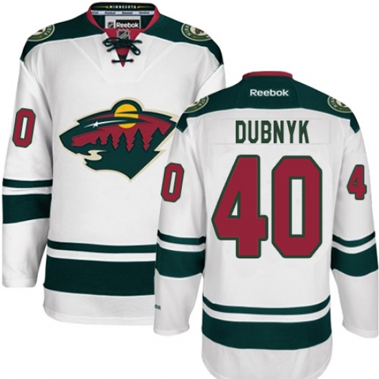 Home>NHL>Minnesota Wild>Devan Dubnyk>Youth Reebok Minnesota Wild #40 Devan Dubnyk Authentic White Away NHL Jersey