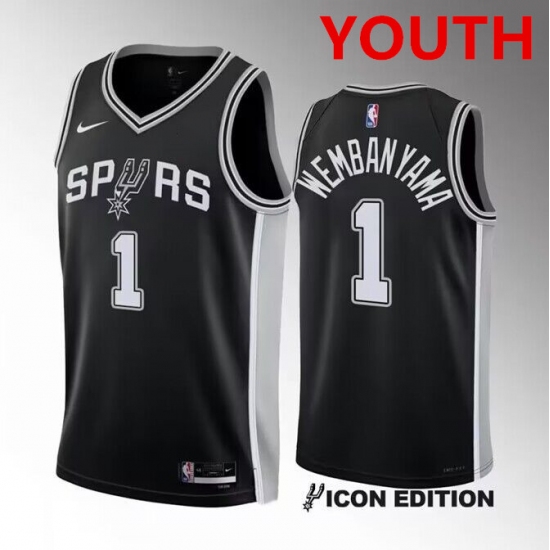 Youth San Antonio Spurs #1 Victor Wembanyama black icon edition stitched basketball jersey