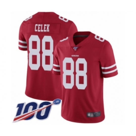 Youth San Francisco 49ers #88 Garrett Celek Red Team Color Vapor Untouchable Limited Player 100th Season Football Jersey