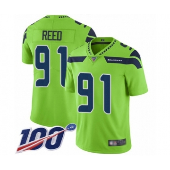 >Youth Seattle Seahawks #91 Jarran Reed Limited Green Rush Vapor Untouchable 100th Season Football Jersey