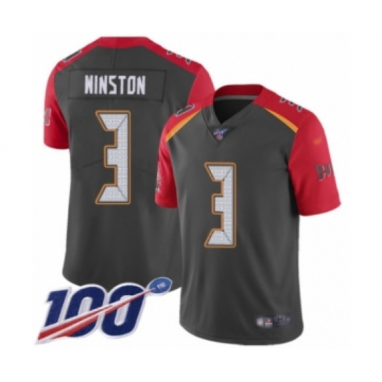 Men's Tampa Bay Buccaneers #3 Jameis Winston Limited Gray Inverted Legend 100th Season Football Jersey