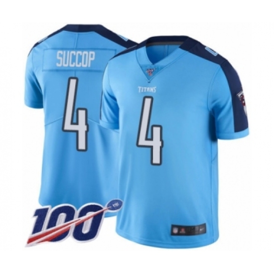 >Youth Tennessee Titans #4 Ryan Succop Limited Light Blue Rush Vapor Untouchable 100th Season Football Jersey