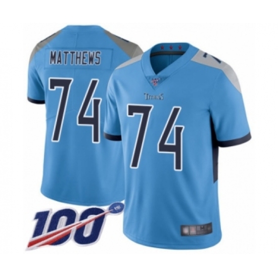 >Youth Tennessee Titans #74 Bruce Matthews Light Blue Alternate Vapor Untouchable Limited Player 100th Season Football Jersey