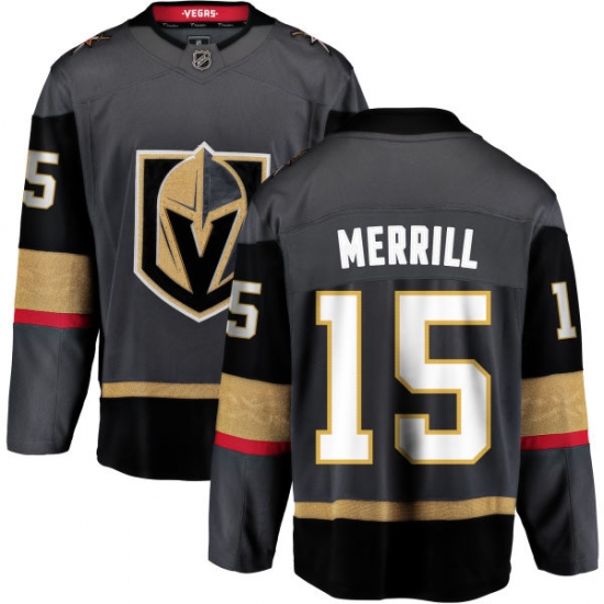 Home>NHL>Vegas Golden Knights>Jon Merrill>Youth Vegas Golden Knights #15 Jon Merrill Authentic Black Home Fanatics Branded Breakaway NHL Jersey