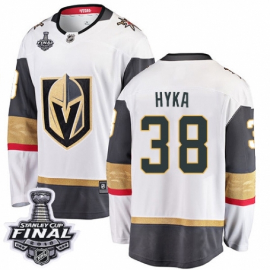 >Youth Vegas Golden Knights #38 Tomas Hyka Authentic White Away Fanatics Branded Breakaway 2018 Stanley Cup Final NHL Jersey