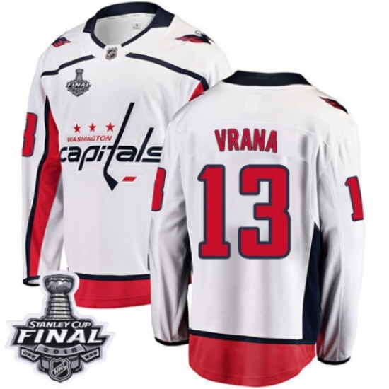 Men's Adidas Washington Capitals #13 Jakub Vrana Authentic White Away 2018 Stanley Cup Final Champions NHL Jersey