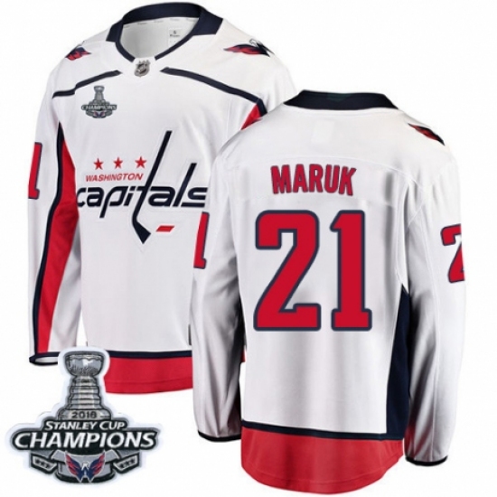 >Youth Washington Capitals #21 Dennis Maruk Fanatics Branded White Away Breakaway 2018 Stanley Cup Final Champions NHL Jersey
