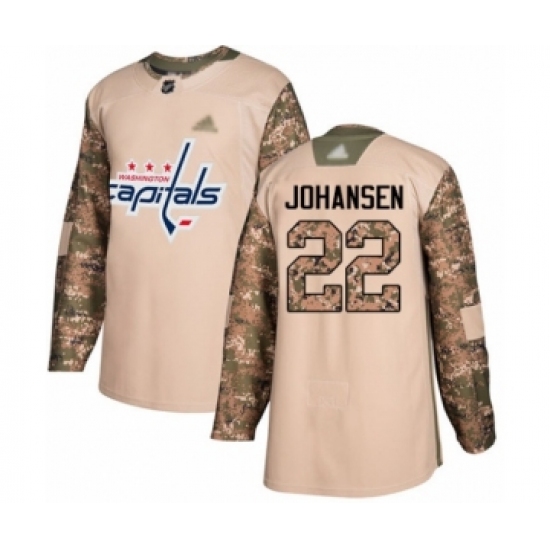 >Youth Washington Capitals #22 Lucas Johansen Authentic Camo Veterans Day Practice Hockey Jersey