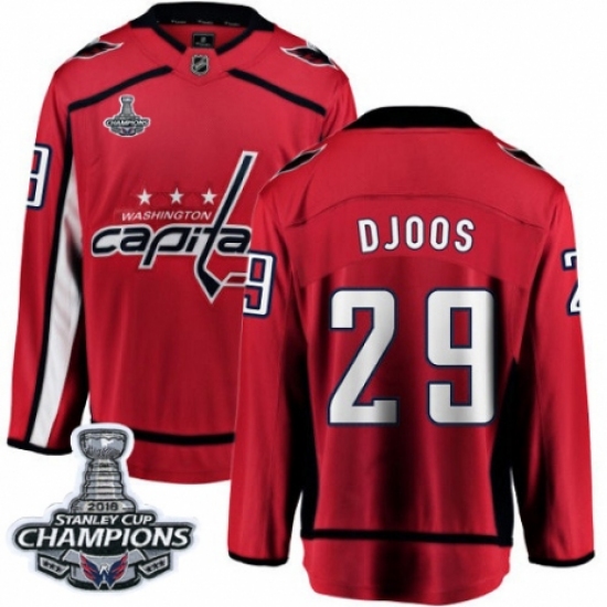 >Youth Washington Capitals #29 Christian Djoos Fanatics Branded Red Home Breakaway 2018 Stanley Cup Final Champions NHL Jersey