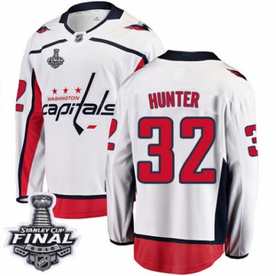 Men's Adidas Washington Capitals #32 Dale Hunter Authentic White Away 2018 Stanley Cup Final NHL Jersey