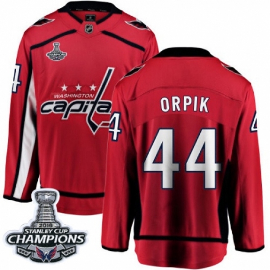 Men's Washington Capitals #44 Brooks Orpik Fanatics Branded Red Home Breakaway 2018 Stanley Cup Final Champions NHL Jersey