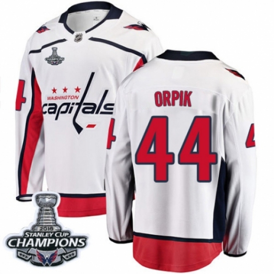 >Youth Washington Capitals #44 Brooks Orpik Fanatics Branded White Away Breakaway 2018 Stanley Cup Final Champions NHL Jersey