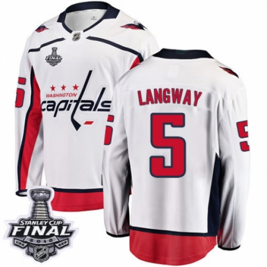 >Youth Washington Capitals #5 Rod Langway Fanatics Branded White Away Breakaway 2018 Stanley Cup Final NHL Jersey