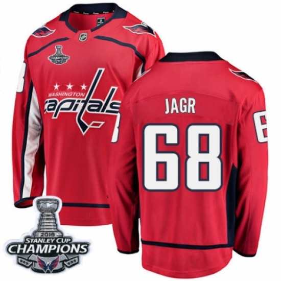 >Youth Washington Capitals #68 Jaromir Jagr Fanatics Branded Red Home Breakaway 2018 Stanley Cup Final Champions NHL Jersey