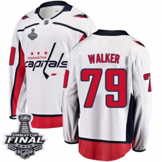 Men's Adidas Washington Capitals #79 Nathan Walker Authentic White Away 2018 Stanley Cup Final NHL Jersey
