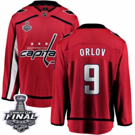 Men's Washington Capitals #9 Dmitry Orlov Fanatics Branded Red Home Breakaway 2018 Stanley Cup Final Champions NHL Jersey