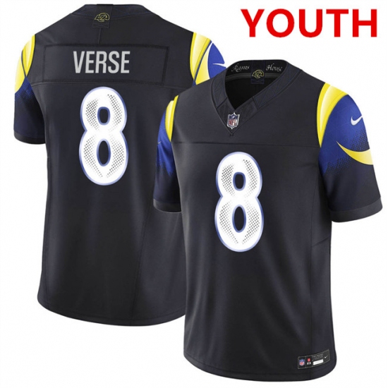 >Youth los angeles rams #8 jared verse midnight blue 2025 f.u.s.e. “rivalries” vapor limited football stitched jersey