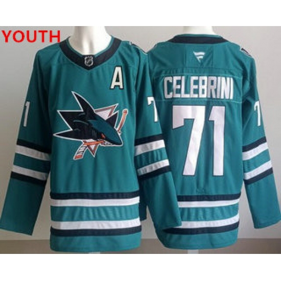 Youth san jose sharks #71 macklin celebrini teal authentic jersey